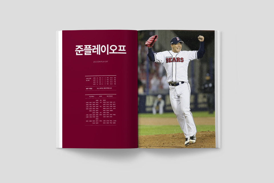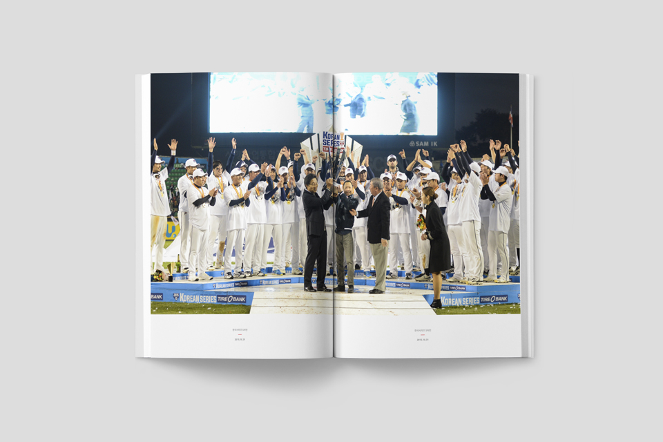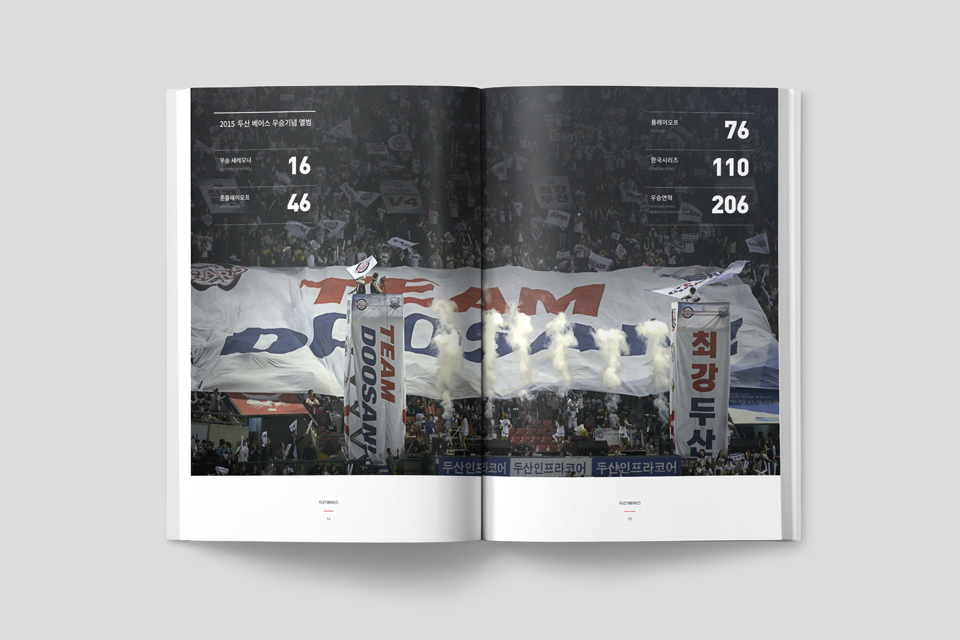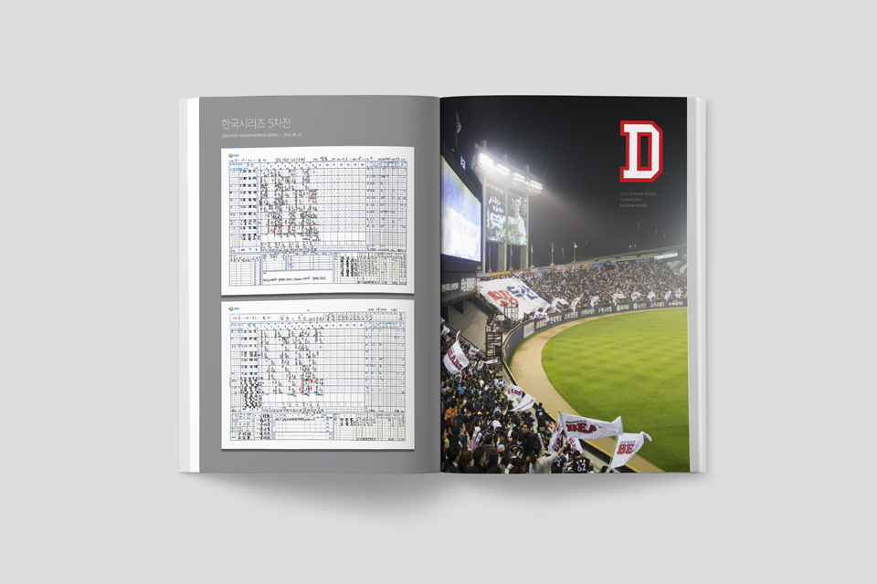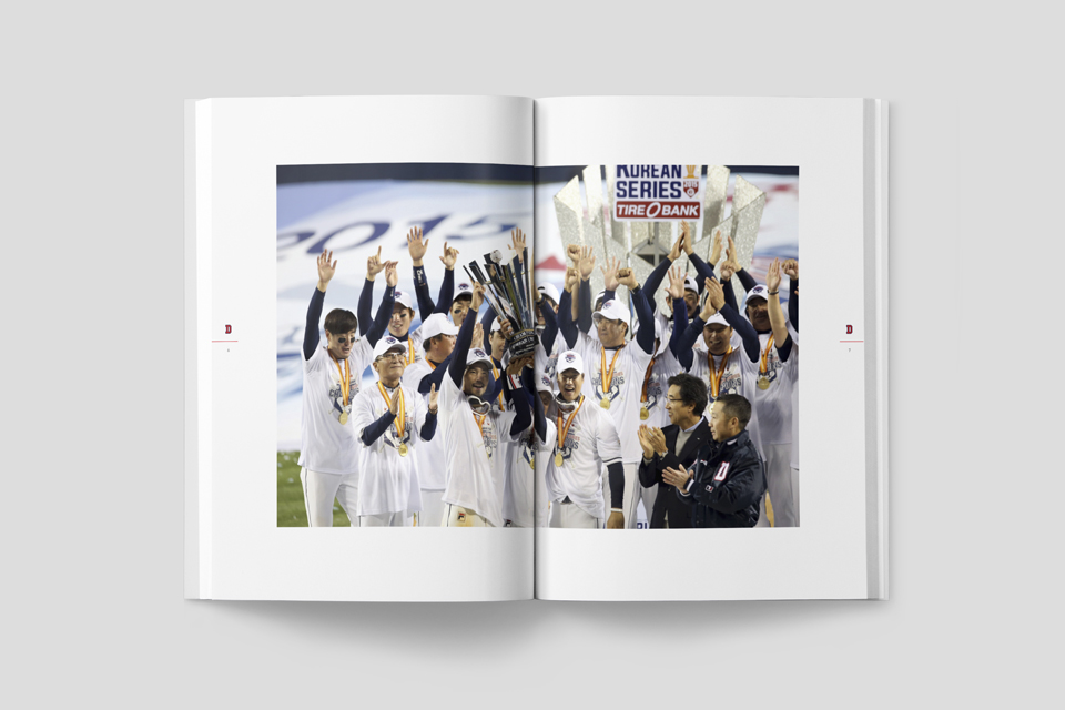 스포츠의 감동은 경기 종료와 함께 흩어지기 마련이지만, 디자인은 그 뜨거웠던 찰나의 기억을 손에 잡히는 기록으로 치환합니다. 14년 만에 정상을 탈환했던 두산베어스의 2015년 한국시리즈 우승 기념 사진집은, 단순한 아카이빙을 넘어 승리의 서사를 시각적으로 재구축한 프로젝트입니다.