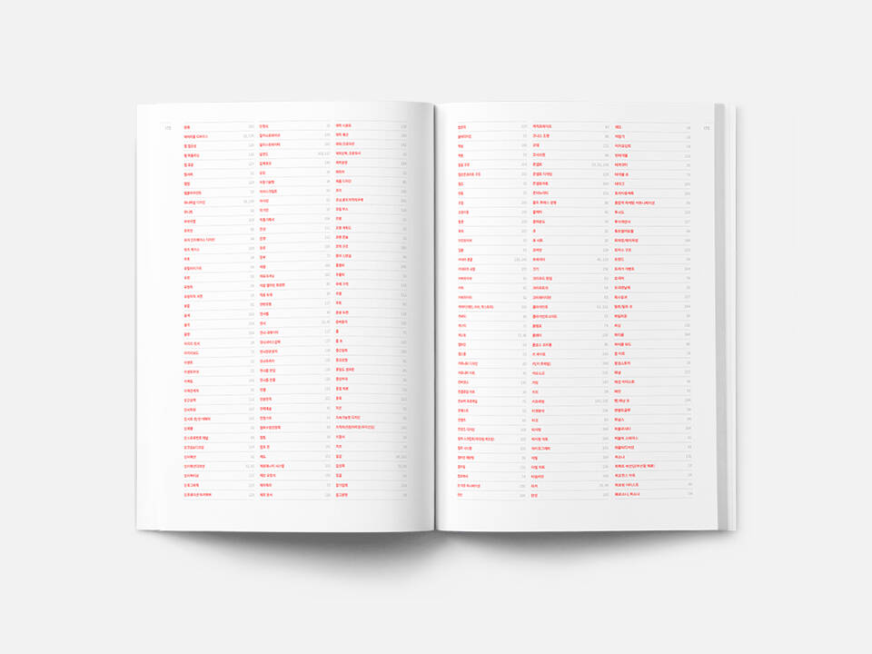 1,092개의 키워드를 한 권의 책자에 담아내는 과정은 고도의 큐레이션 작업과 같습니다. 로고에서 파생된 그래픽 모티프와 서체 시스템은 복잡한 정보들 사이에 유기적인 흐름을 만들어내며, 독자에게 리듬감 있는 경험을 제공합니다. 이는 단순한 기록을 넘어, 대학의 학제적 깊이를 시각적으로 큐레이션하여 예술적 영감을 전달하는 입체적인 매개체로 기능합니다.